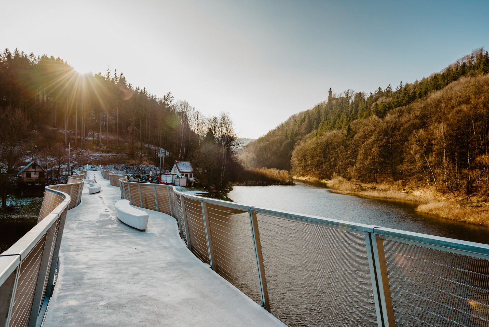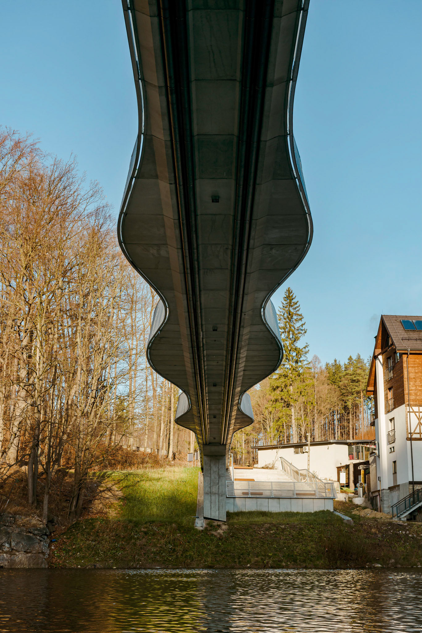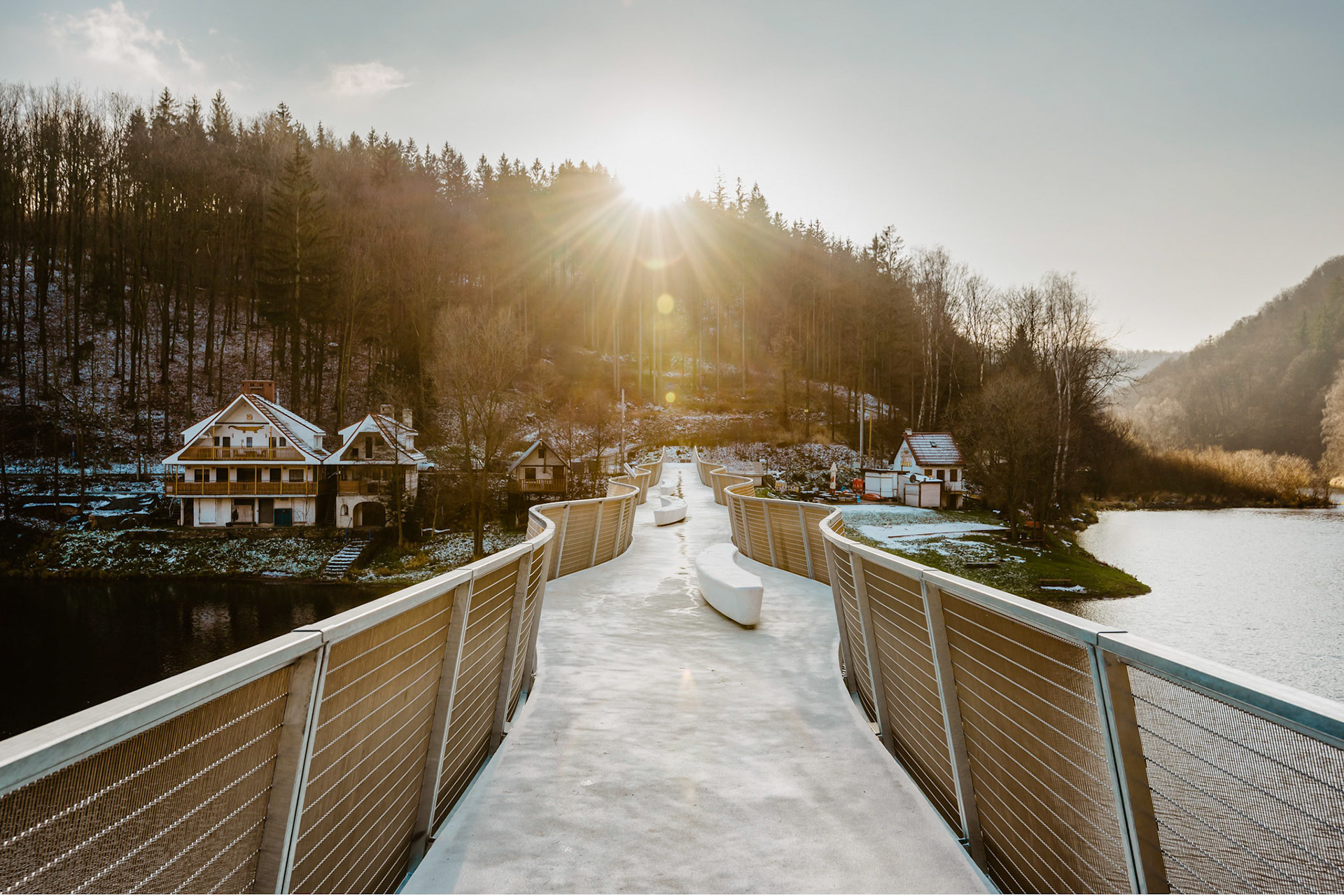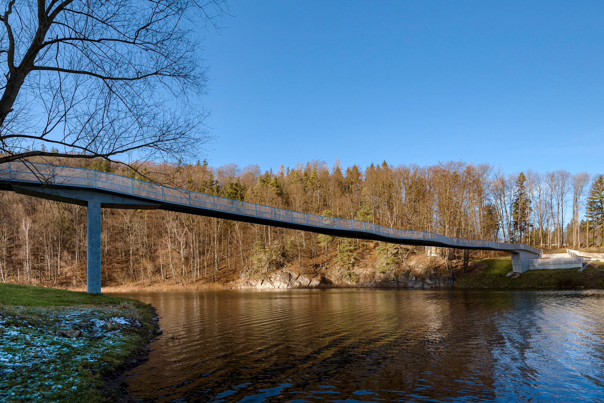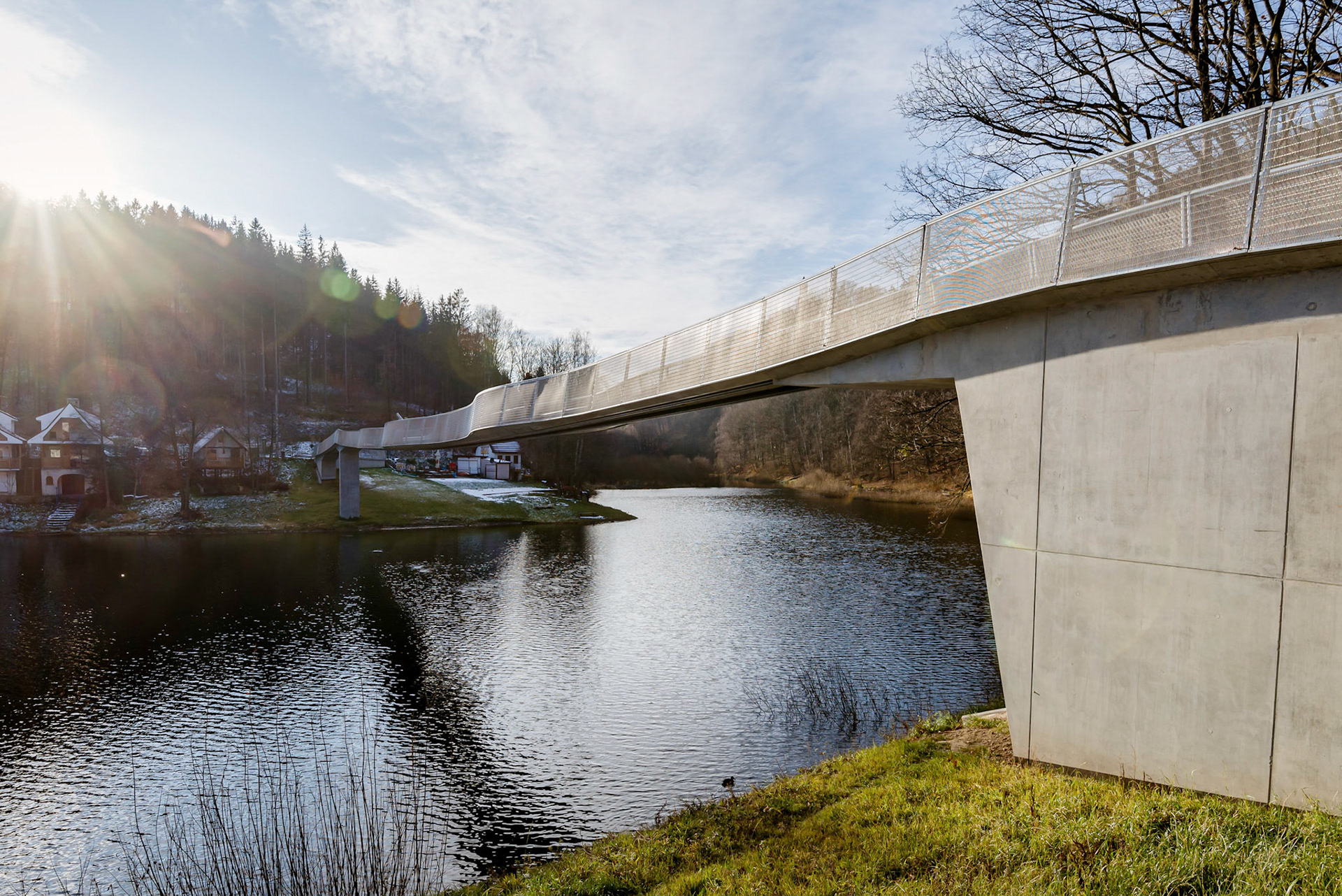 FOTOGRAFIE KŁADKI W ZAGÓRZU ŚLĄSKIM, ZIMĄ I DRONA